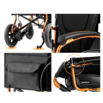 Kursi roda elektrik GEA GO-106 adalah kursi roda lipat modern yang ringan dan praktis untuk mobilitas sehari-hari, dirancang agar mudah dibawa dan nyaman digunakan. Fitur utamanya meliputi rangka aluminium ringan yang mudah dilipat, kontrol joystick 360°, baterai lithium-ion yang bisa dilepas cepat, serta sistem pengereman elektromagnetik untuk keamanan di tanjakan. Kursi roda ini juga dilengkapi dengan fitur seperti bantalan mesh yang empuk dan breathable, sandaran tangan yang bisa dilipat ke atas, dan roda honeycomb yang tangguh.