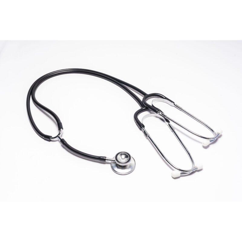 Stetoskop ABN training adalah stetoskop abn dengan 2 selang dan 2 pasang eartip dan 1 kepala yang digunakan untuk memeriksa tubuh pasien oleh 2 orang bersamaan.