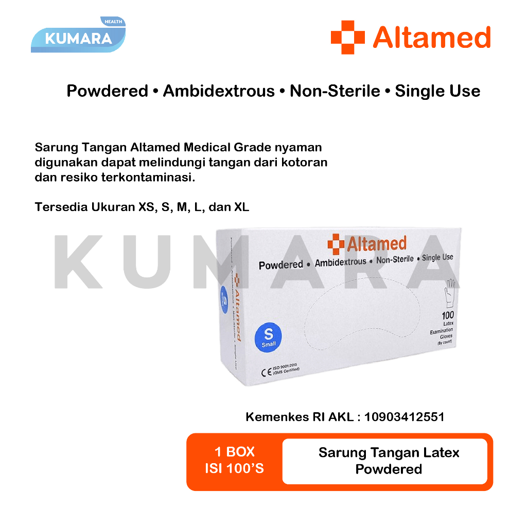 Sarung tangan altamed latex atau sarung tangan karet biasa digunakan oleh medis dan non medis nyaman dan lembut di tangan.