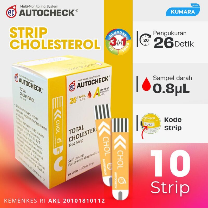 Setiap strip bersifat sekali pakai (single-use) untuk menjamin kebersihan dan akurasi pada setiap pengujian. Setiap kotak berisi 10 buah strip kolesterol Autocheck.