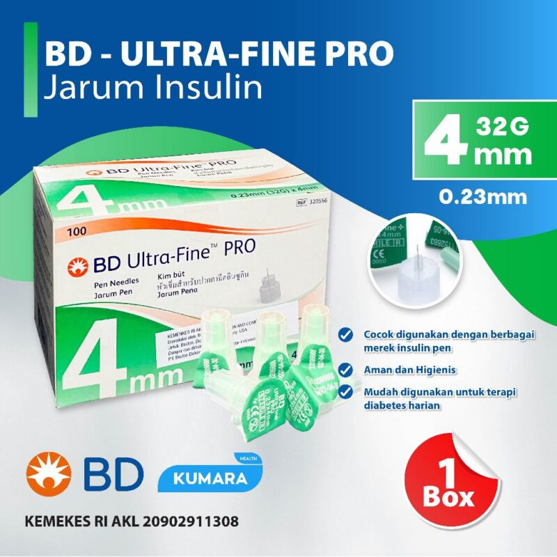 BD – UltraFine PRO 4mm 32G Jarum Insulin Hijau | Insulin Pen Box isi 100’s | KUMARA
