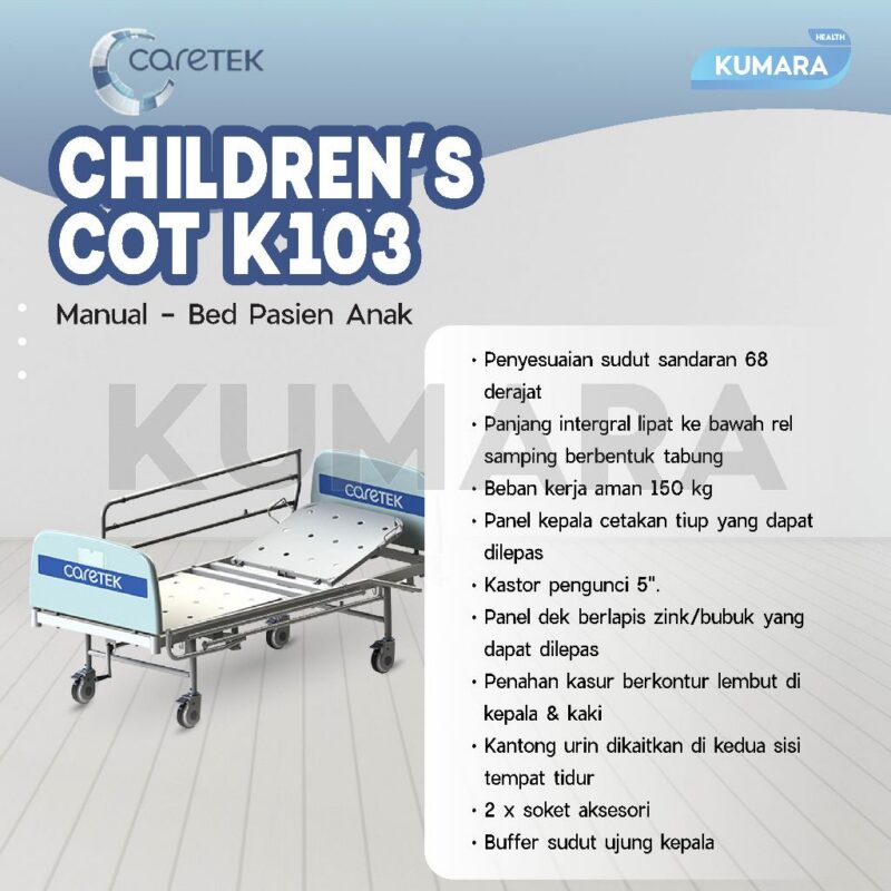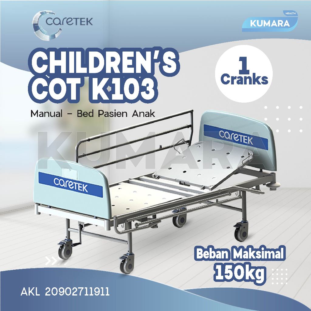 Ranjang Pasien Anak Caretek K103 Children’s Cot merupakan alat tempat tidur / ranjang untuk pasien yang aman dan nyaman saat digunakan, dengan material bahan baja berkualitas tinggi.