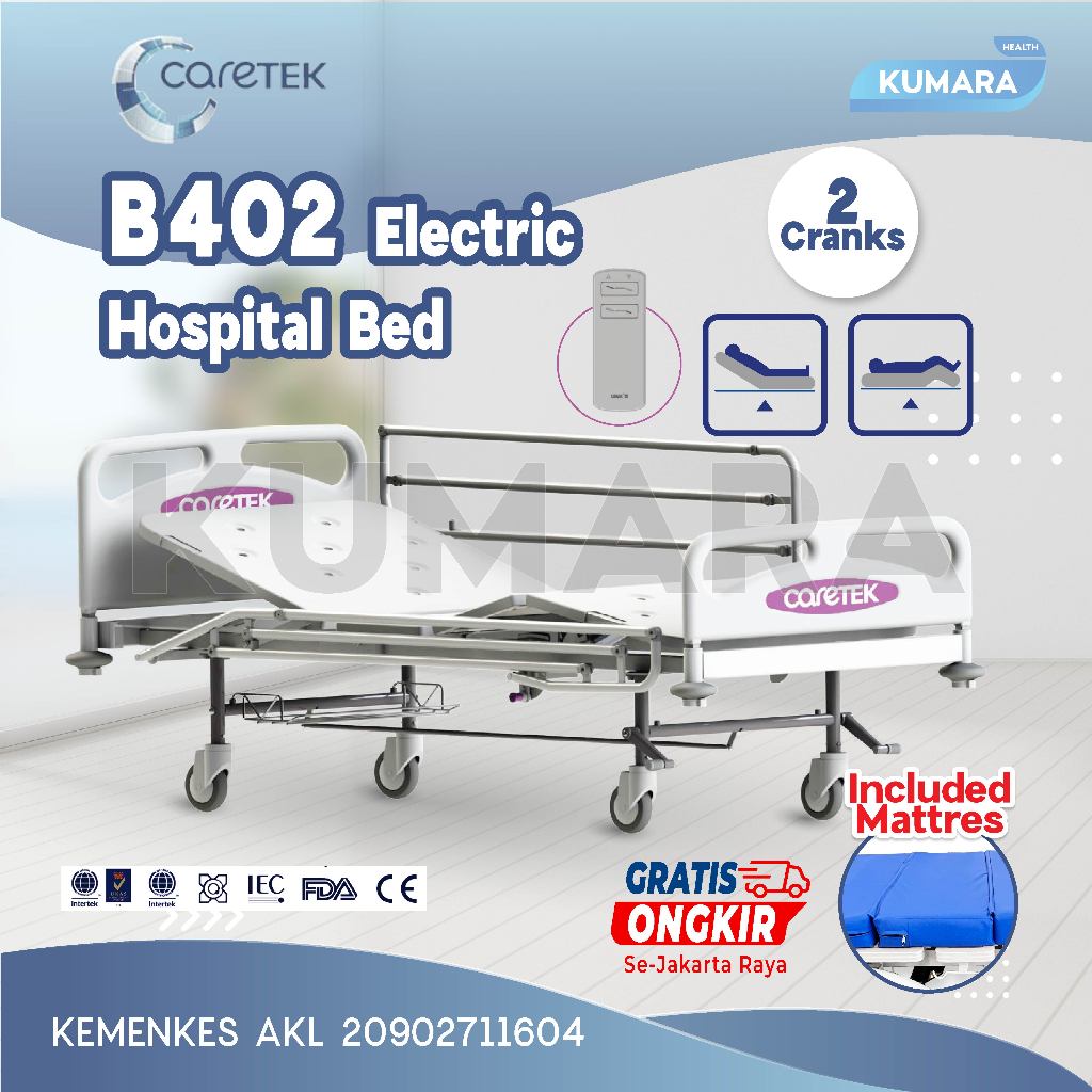 CARETEK – Hospital Bed 2 Crank Electric B402 / Ranjang Pasien Elektrik 2 Engkol