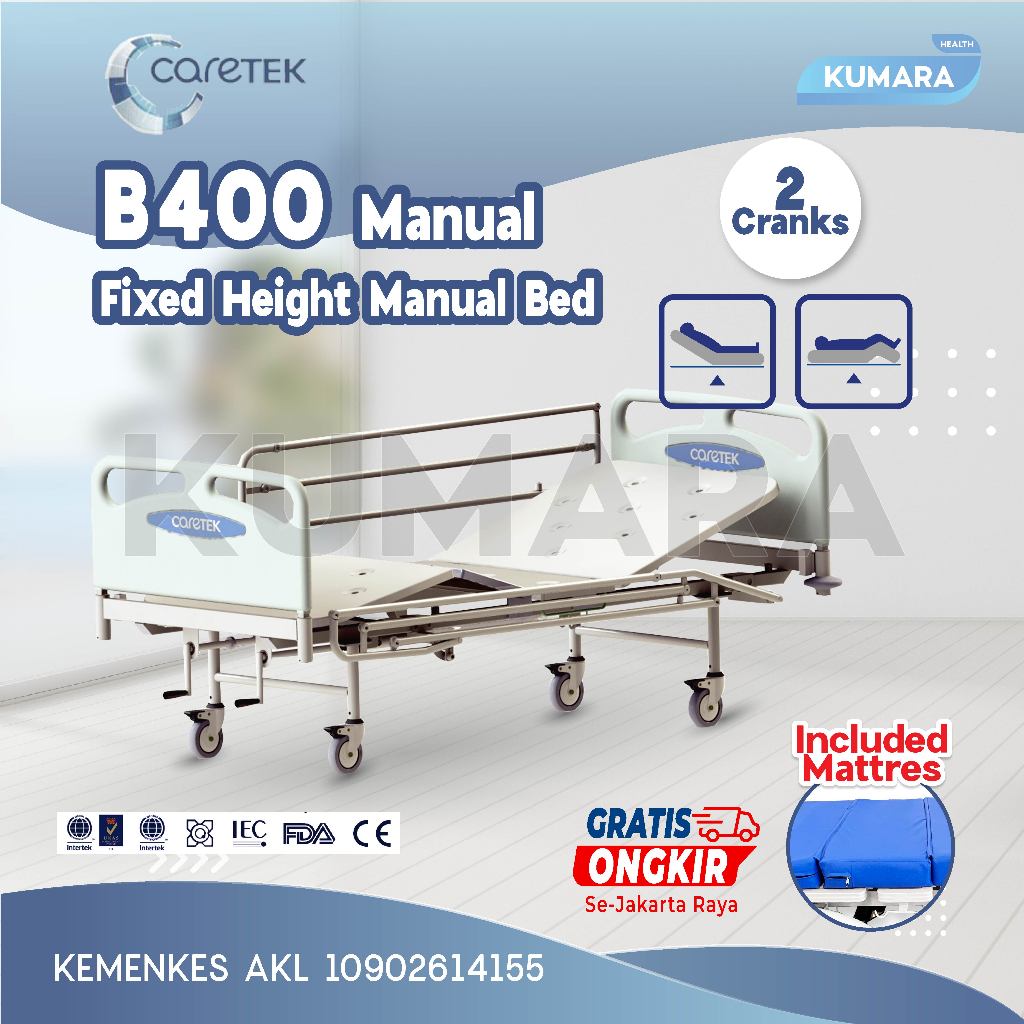 CARETEK – Hospital Bed 2 Crank Manual B400 / Ranjang Pasien 2 Engkol Manual