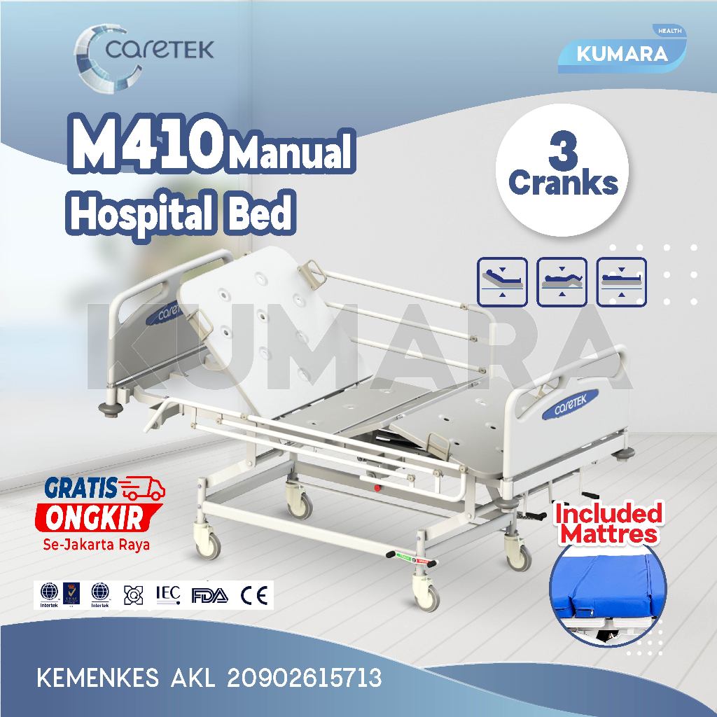 CARETEK – Hospital Bed 3 Crank Manual M410 / Ranjang Pasien 3 Engkol Manual