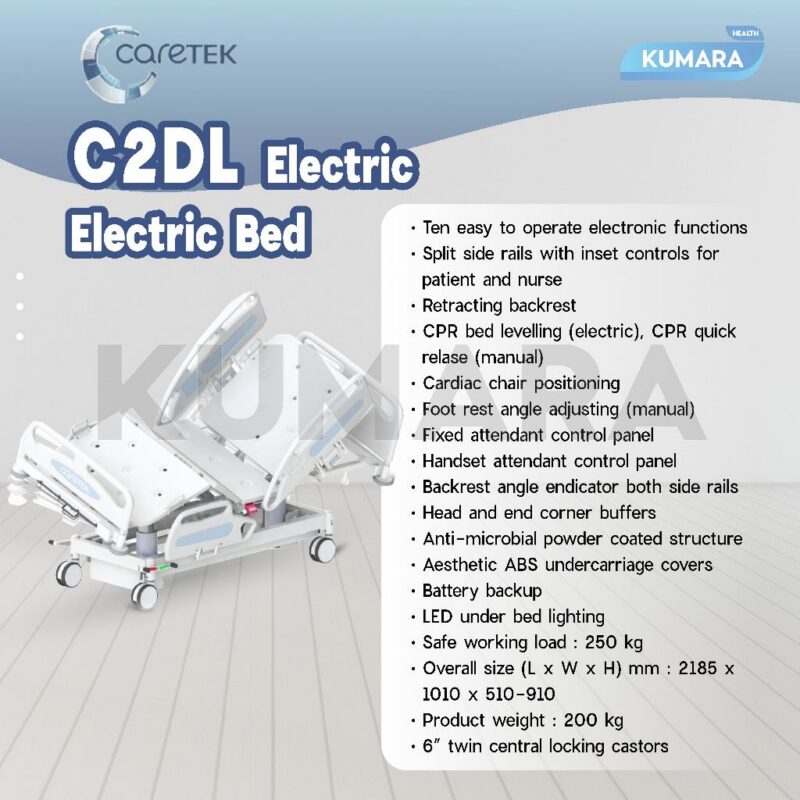 Caretek C-2DL Tilt Bed merupakan tempat tidur elektrik yang pada umunya digunakan di rumah sakit yang disediakan untuk pasien yang diharuskan rawat inap untuk mendapatkan perawatan intensif. Ranjang ini dapat atur dan difungsikan dengan elektrik maupun manual.