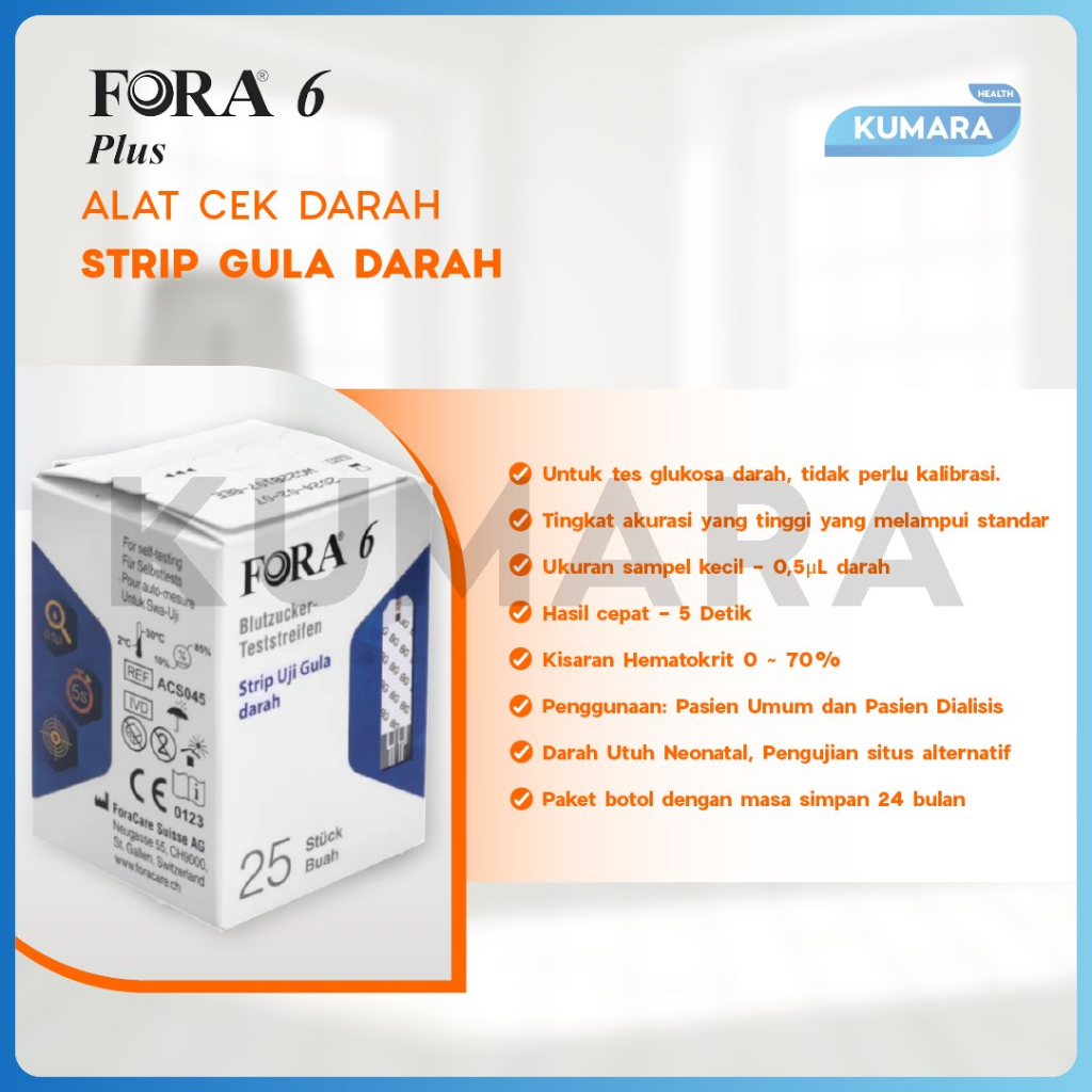 Strip Gula merupakan strip isi ulang yang digunakan untuk alat test gula darah Fora 6 Plus.