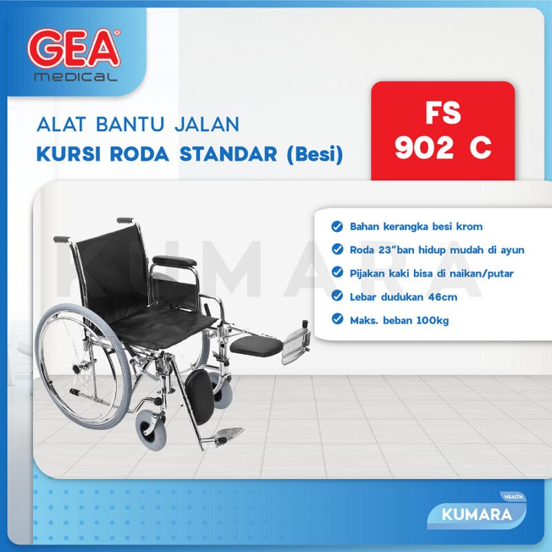 GEA – Kursi Roda Selonjor FS 902 C Kursi roda standar dengan kerangka terbuat dari besi, desain yang kokoh serta mampu menopang berat hingga 100 kg. Pada bagian sandaran tangan dan kaki dapat di lepas yang memudahkan pasien keluar atau masuk dari samping. Detail Produk: – Rangka kursi baja chrome – Sandaran tangan yang bisa dilepas – Pijakan kaki dapat diangkat – Castor, roda belakang pneumatik (ban hidup) – Lebar kursi: 46cm – Pemuatan maksimum: 100 kg Spesifikasi Produk : – Bahan Kerangka : Besi Chrome – Bahan Dudukan dan Sandaran : Sintetis / Oscar – Bahan Pijakan Kaki : Besi Chrome – Reclining / Rebahan : Tidak – Jenis Roda : Velg Jari – Jenis Ban : Ban hidup Sandaran Tangan Dapat Diangkat / Lepas : Ya Pijakan Kaki dapat Diangkat : Ya Rem Tangan : Ya Rem Belakang : Tidak Sabuk Pengaman : Tidak Dapat Dilipat : Ya Maksimum Beban : 100 kg Varian Warna : HItam Tas/Box Penyimpanan : Tidak Kelengkapan Produk : Kursi Roda, Pijakan kaki (teripisah), Buku Petunjuk, Kunci Untuk pengajuan komplain wajib menyertakan video unboxing paket. Semua produk yang telah dibeli tidak dapat di retur, karena resiko kemasan rusak akibat kesalahan kurir pada saat pengiriman paket. Pastikan produk yang dipesan sudah benar dan sesuai pada saat transaksi. Happy Shopping Sahabat Sehat Keluarga !!