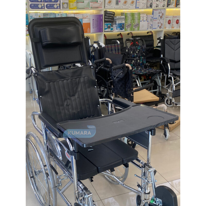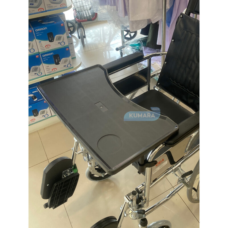 Dengan adanya tempat makan dikursi roda ini akan membuat Anda tidak perlu turun dari kursi roda cukup makan ditempat. Dan juga bisa difungsikan sebagai meja untuk bermain laptop.