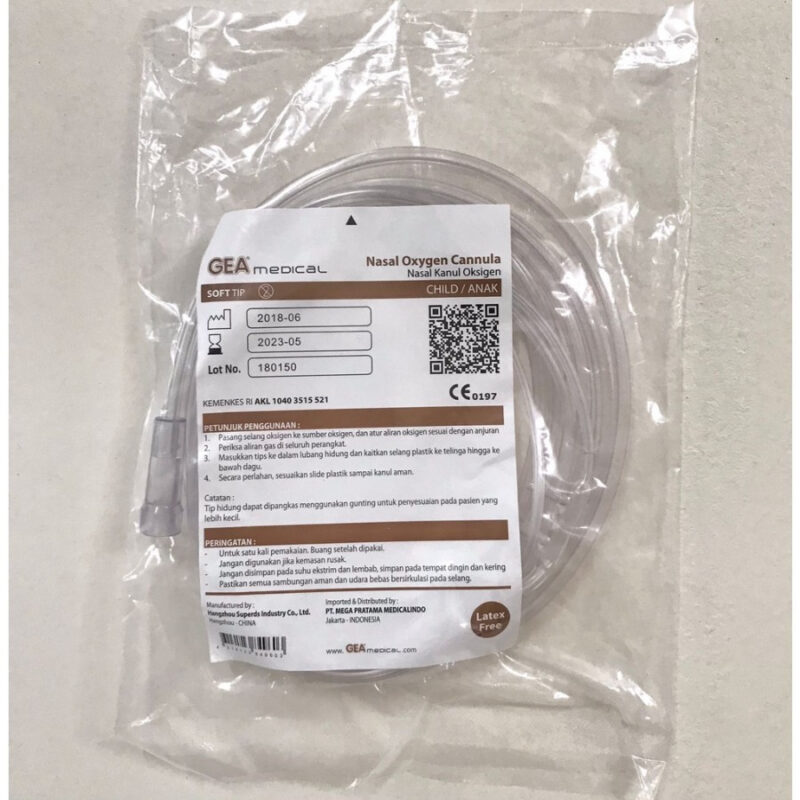 GEA – Selang Nasal Oksigen Soft Tip / Nasal Oxygen Cannula GEA Nasal Oxygen Cannula Soft TIP (Putih) Untuk membantu pernafasan menghubungkan oksigen dengan saluran pernafasan. Merk Gea no Pastikan anda gantikan selang inhalasi anda setiap hari. Dapatkan kualitas oksigen yang segar dengan penggantian selang yang teratur. 1. Selang Oksigen bisa untuk inhalasi. 2. Kualitas yang bagus punya. 3. Ada tanggal kadaluarsanya / expired nya. 4. Selang juga sangat bagus digunakan untuk Hydrogen Fontaine. Petunjuk Penggunaan : 1. Pasang selang oksigen ke sumber oksigen, dan atur aliran oksigen sesuai dgn anjuran 2. Periksa aliran gas di seluruh perangkat 3. Masukkan tips ke dalam lubang hidung dan kaitkan selang plastik ke telinga hingga ke bawah dagu 4. Secara perlahan, sesuaikan slide plastik sampai kanul aman. Untuk pengajuan komplain wajib menyertakan video unboxing paket. Semua produk yang telah dibeli tidak dapat di retur, karena resiko kemasan rusak akibat kesalahan kurir pada saat pengiriman paket. Pastikan produk yang dipesan sudah benar dan sesuai pada saat transaksi. Happy Shopping Sahabat Sehat Keluarga !!