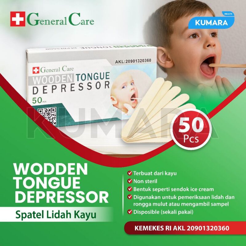 Tongue spatel kayu (sundip lidah) General Care adalah alat untuk pemeriksaan lidah dan rongga mulut serta untuk mengambil sampel di dalam rongga mulut atau ditempat lain.