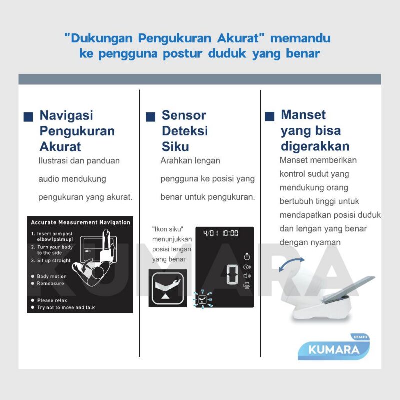 – Tensimeter otomatis dengan tampilan yang mudah dibaca dan fitur yang mudah digunakan