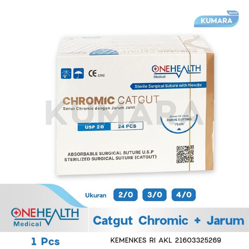 ONEHEALTH – Catgut Chromic + Jarum / Benang Jahit Chromic Pcs