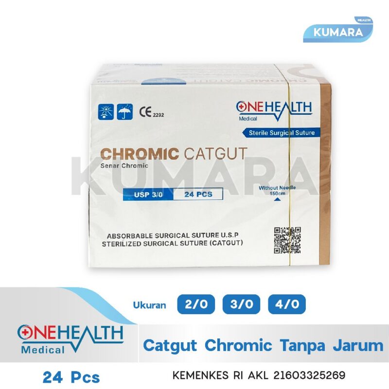 ONEHEALTH – Catgut Chromic Tanpa Jarum / Benang Jahit Chromic Box isi 24’s
