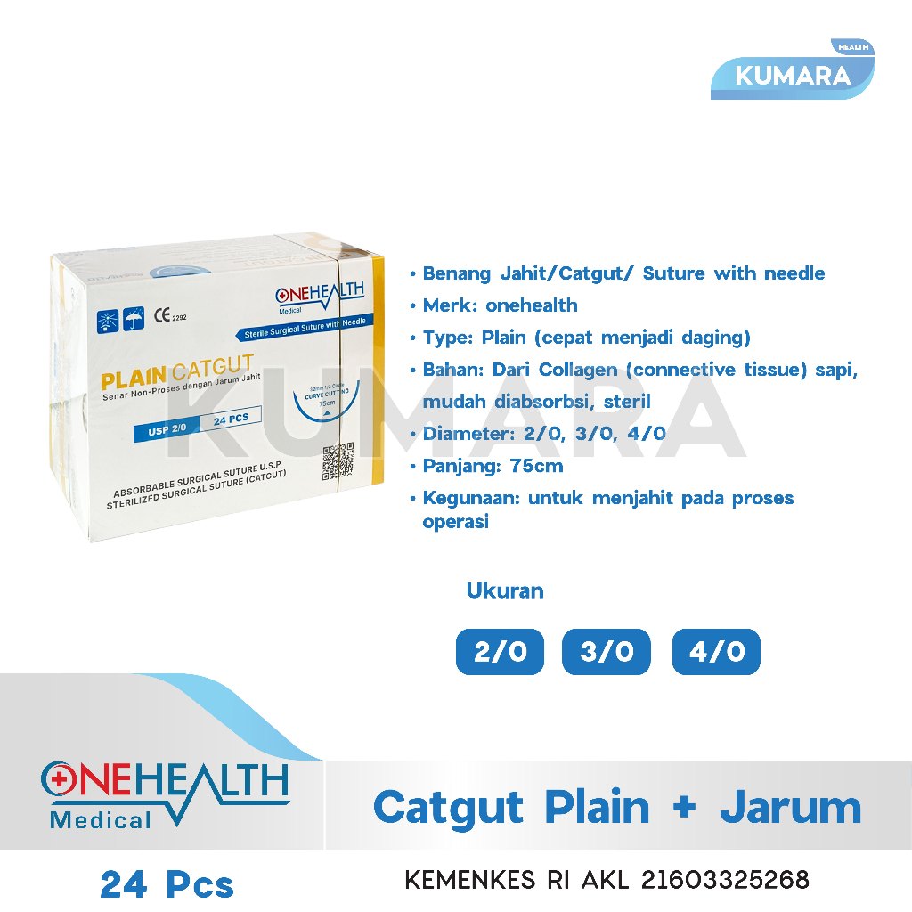 ONEHEALTH – Catgut Plain + Jarum / Benang Jahit Plain Box isi 24’s