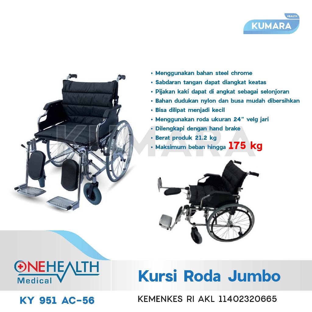 ONEHEALTH – Kursi Roda Heavy Duty KY 951 AC-56 Jumbo