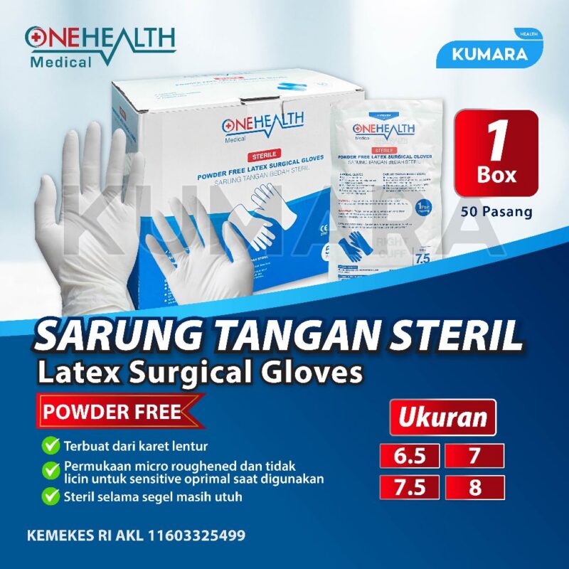 OneHealth Latex Surgical Glove merupakan sarung tangan yang biasanya digunakan oleh tenaga medis untuk terhindar dari terjadinya infeksi silang dan digunakan untuk keperluan bedah atau operasi.