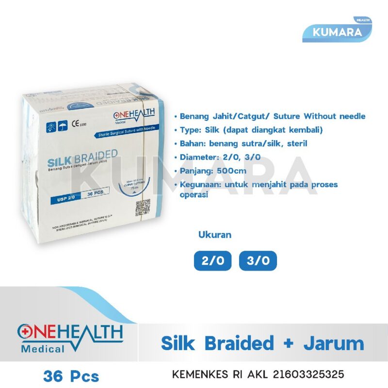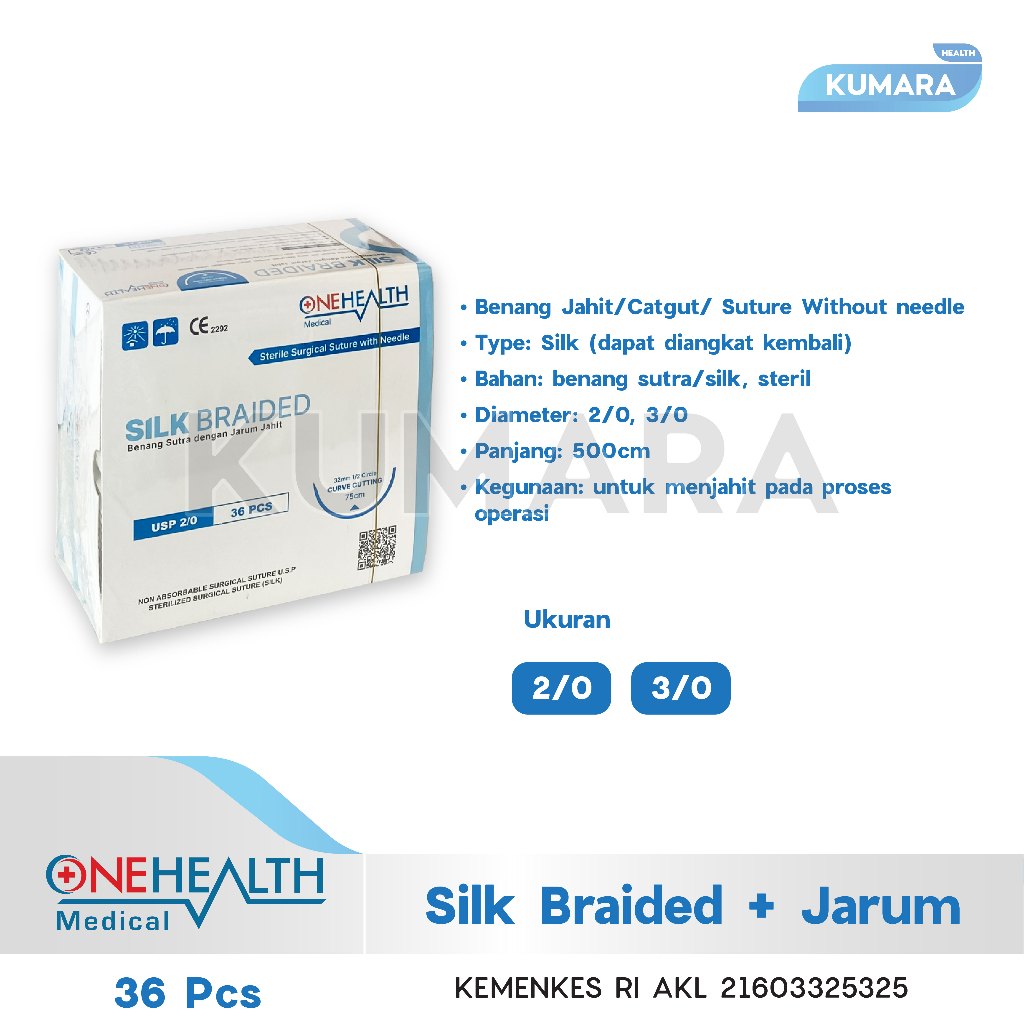 ONEHEALTH – Silk Braided + Jarum / Benang Jahit Silk Box isi 36’s