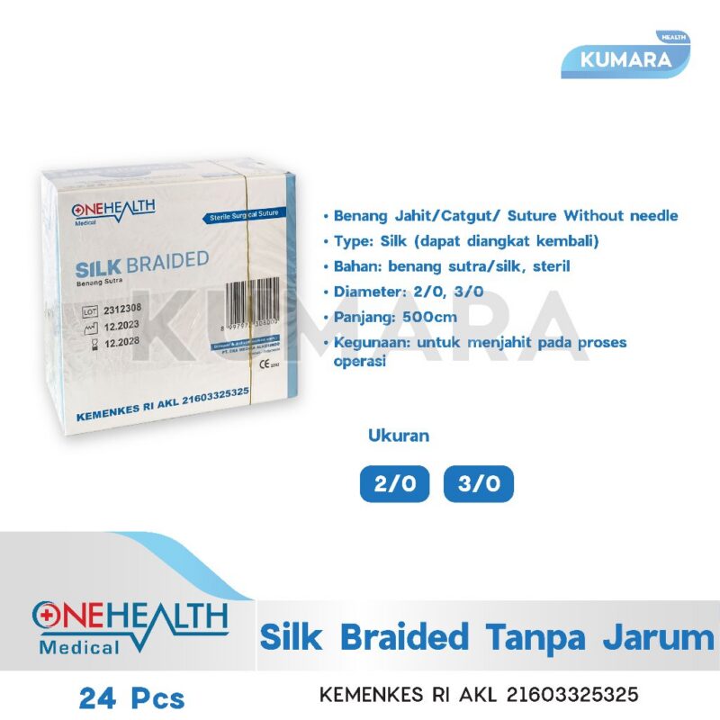 ONEHEALTH – Silk Braided Tanpa Jarum / Benang Jahit Silk Box isi 24’s