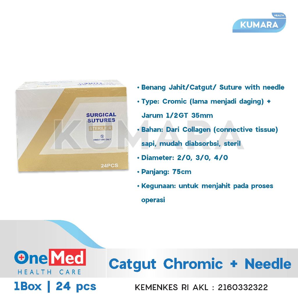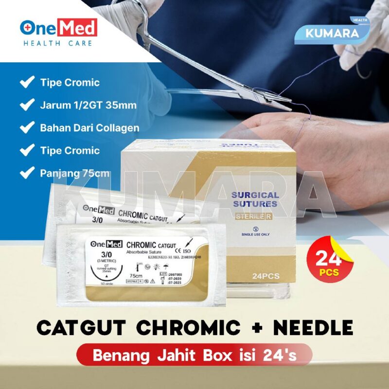 ONEMED – Catgut Chromic + Needle / Benang Jahit Box isi 24’s