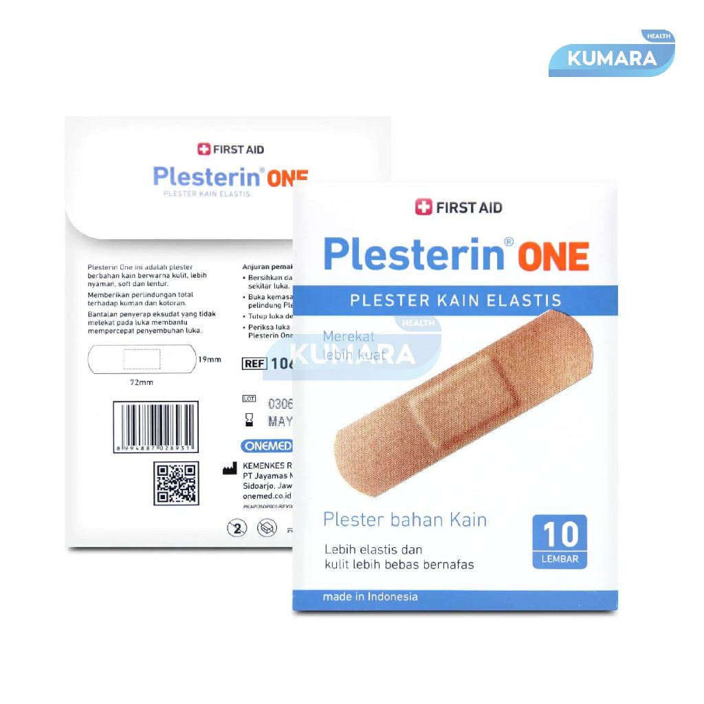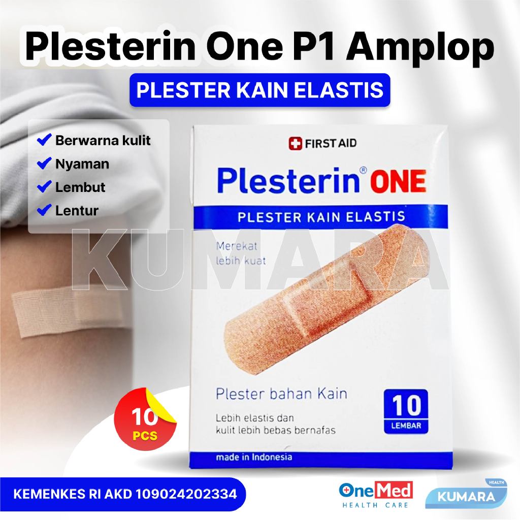 Plesterin One ini adalah plester berbahan kain berwarna kulit, lebih nyaman, lembut, dan lentur sehingga kulit lebih bebas bernafas.Memberikan perlindungan total terhadap kuman dan bakteri. Bantalan penyerap eksudat yang tidak melekat pada luka membantu mempercepat penyempuhan luka.