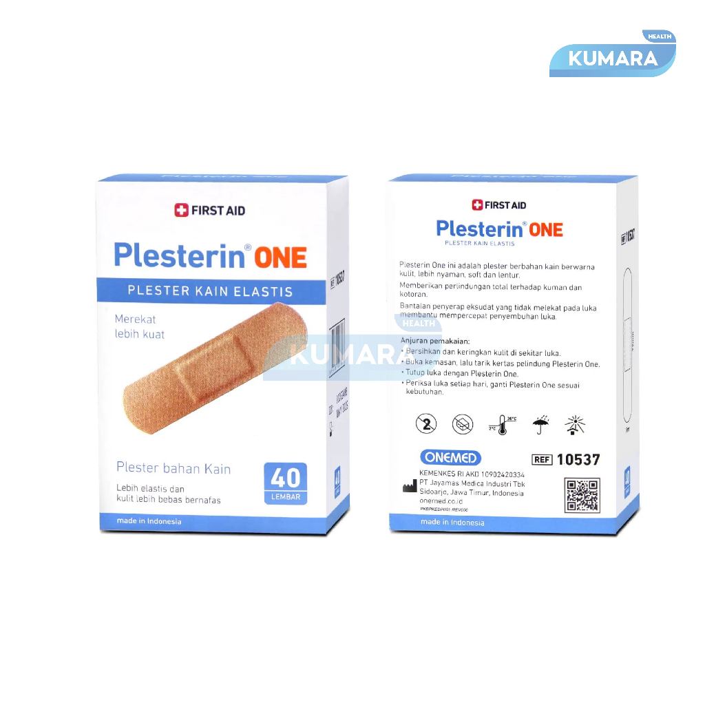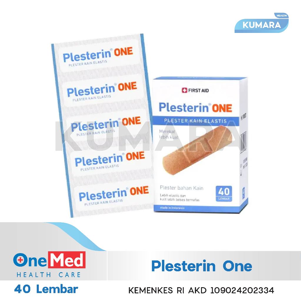 Plesterin One ini adalah plester berbahan kain berwarna kulit, lebih nyaman, lembut, dan lentur sehingga kulit lebih bebas bernafas.Memberikan perlindungan total terhadap kuman dan bakteri. Bantalan penyerap eksudat yang tidak melekat pada luka membantu mempercepat penyempuhan luka.