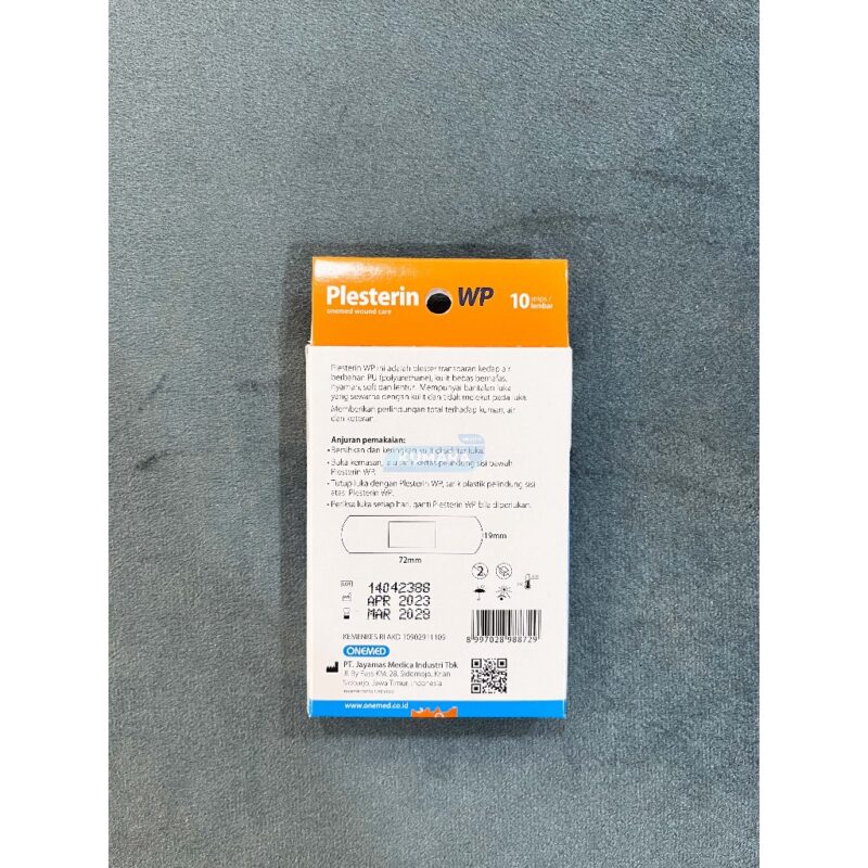 Plesterin WP adalh plester transparan kedap air berbahan PU (Polyurethane), kulit lebih bebas bernafas, lebih nyaman, soft dan lentur. Mempunyai bantalan luka yang sewarna dengan kulit dan tidak melekat pada luka.