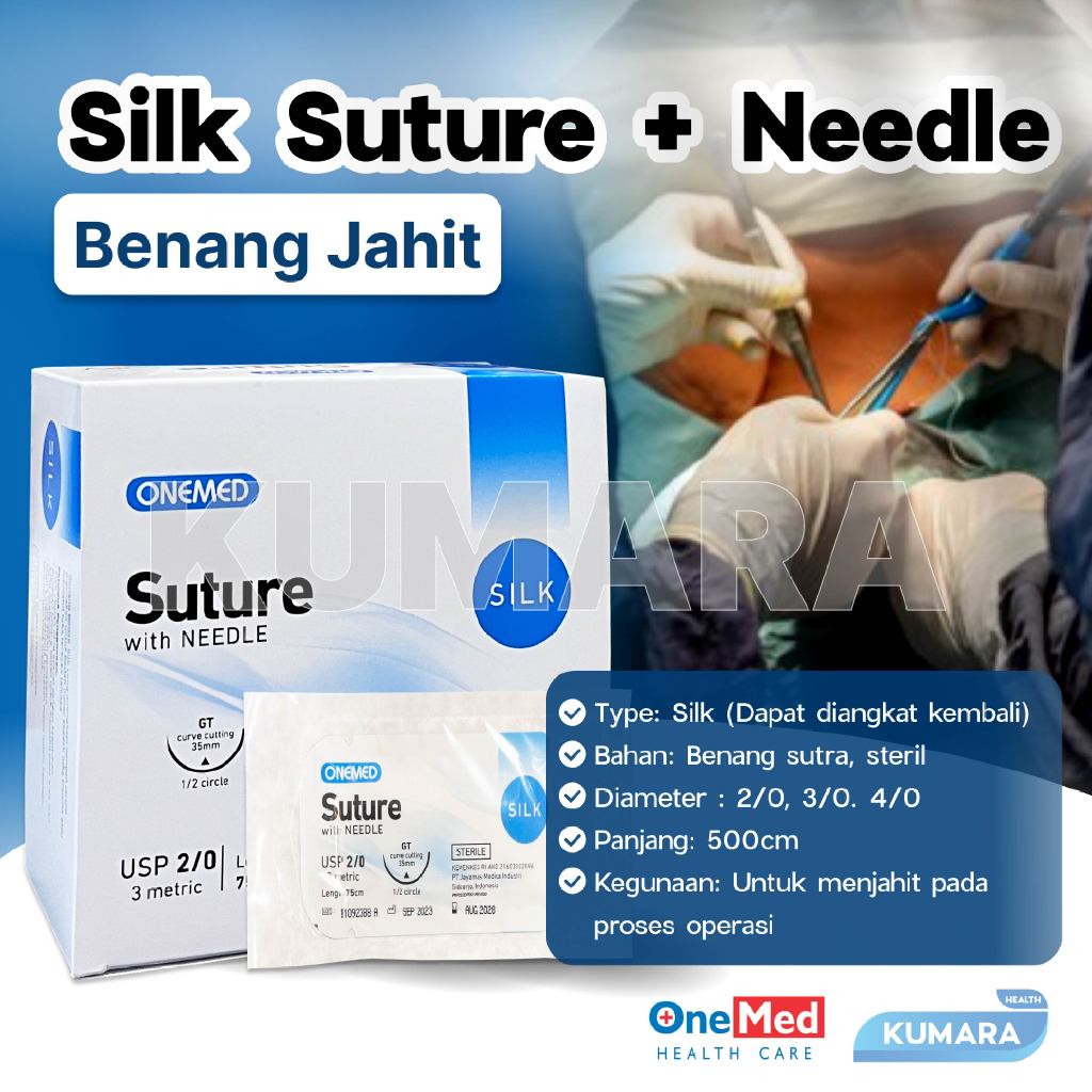 Bahan: benang sutra/silk, steril