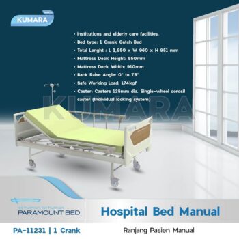 PARAMOUNT – Ward Bed PA-99256 3 Crank Manual / Hospital Bed Single Wheel Caster w/ Central Locking