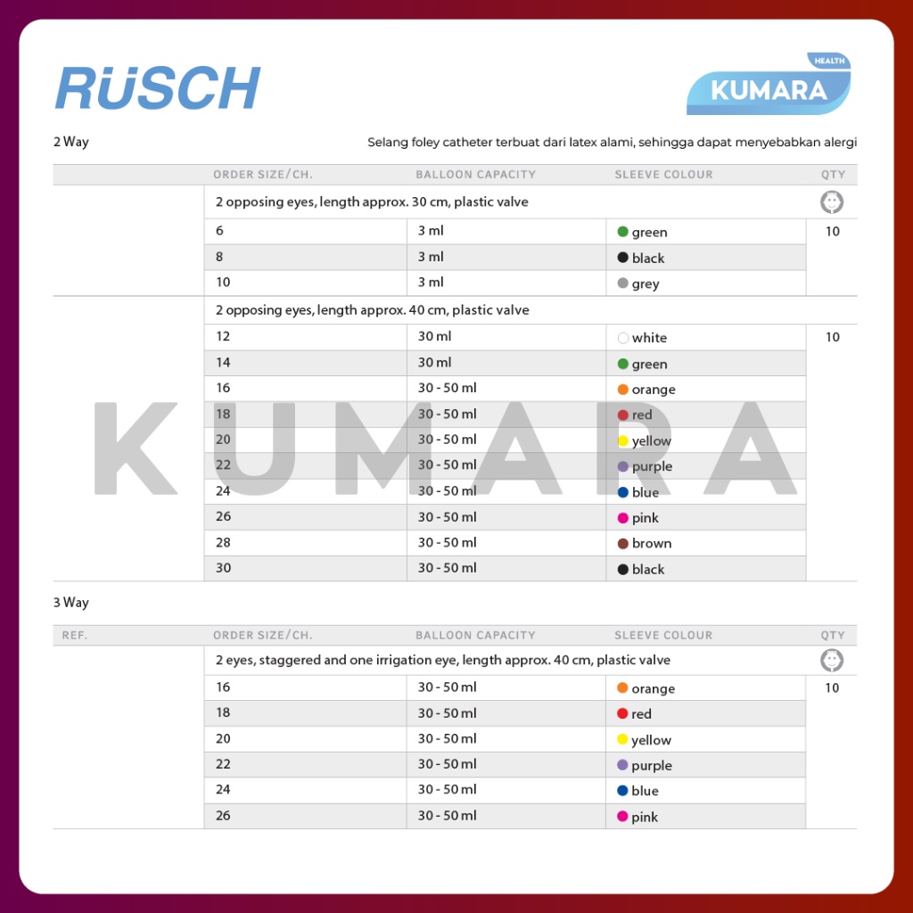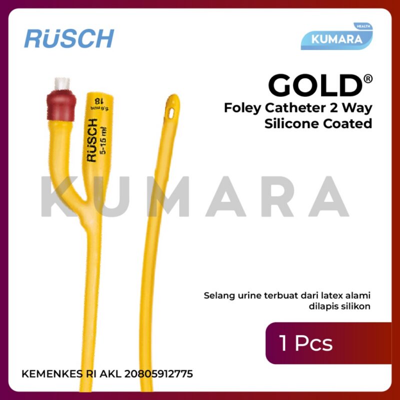 RUSCH – Foley Catheter 2 Way GOLD Latex Silicone Coated / Selang Kateter Latex Lapis Silicone Pcs