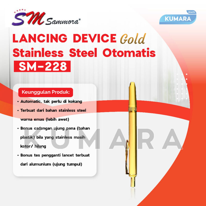 SAMMORA – Lancing Device GOLD Stainless Steel Otomatis SM-228 / Pena Bekam Otomatis