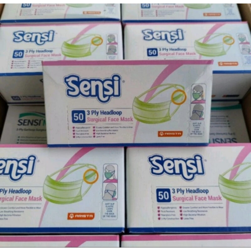 SENSI – Masker Headloop Medis 3 ply isi 50’S / Masker Hijau Medis Surgical Box