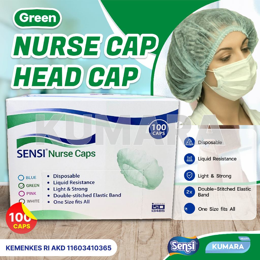 Sensi Nuse caps / Hairnet sebagai penutup kepala supaya rambut tidak terjatuh pada saat melakukan rutinitas dalam bekerja , terutama pada perusahaan yang menjaga higienis pada produknya.