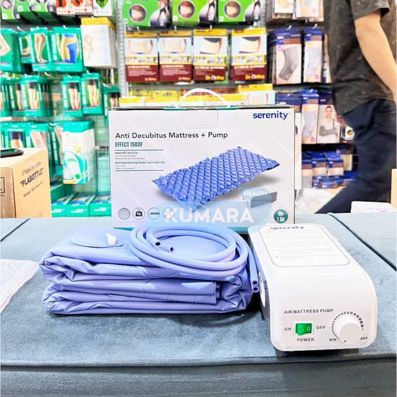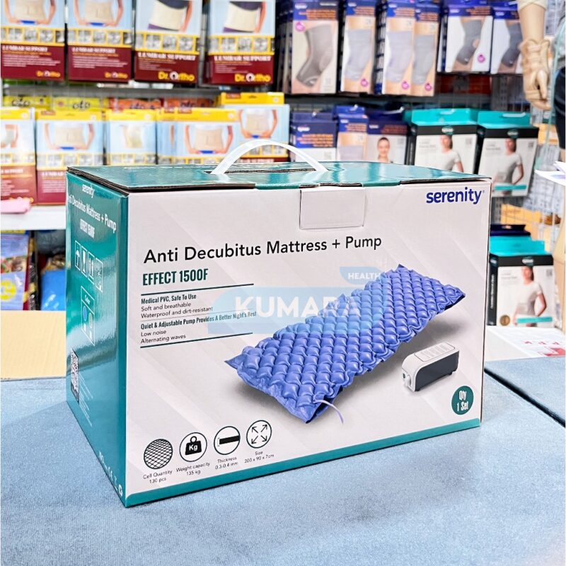 Matras anti-decubitus Serenity Effect 1500F digunakan untuk membantu mencegah terjadinya luka di bagian tubuh pasien yang berbaring lama dan tidak pernah digerakan. Dilengkapi dengan pompa atau mesin kompresor untuk menyalurkan aliran udara kedalam matras. Kasur ini memiliki 130 sel gelembuing yang berisi tekanan udara yang memompa naik-turun menyesuaikan bidang tubuh, berat maupun posisi pasien yang berbaring diatasnya.