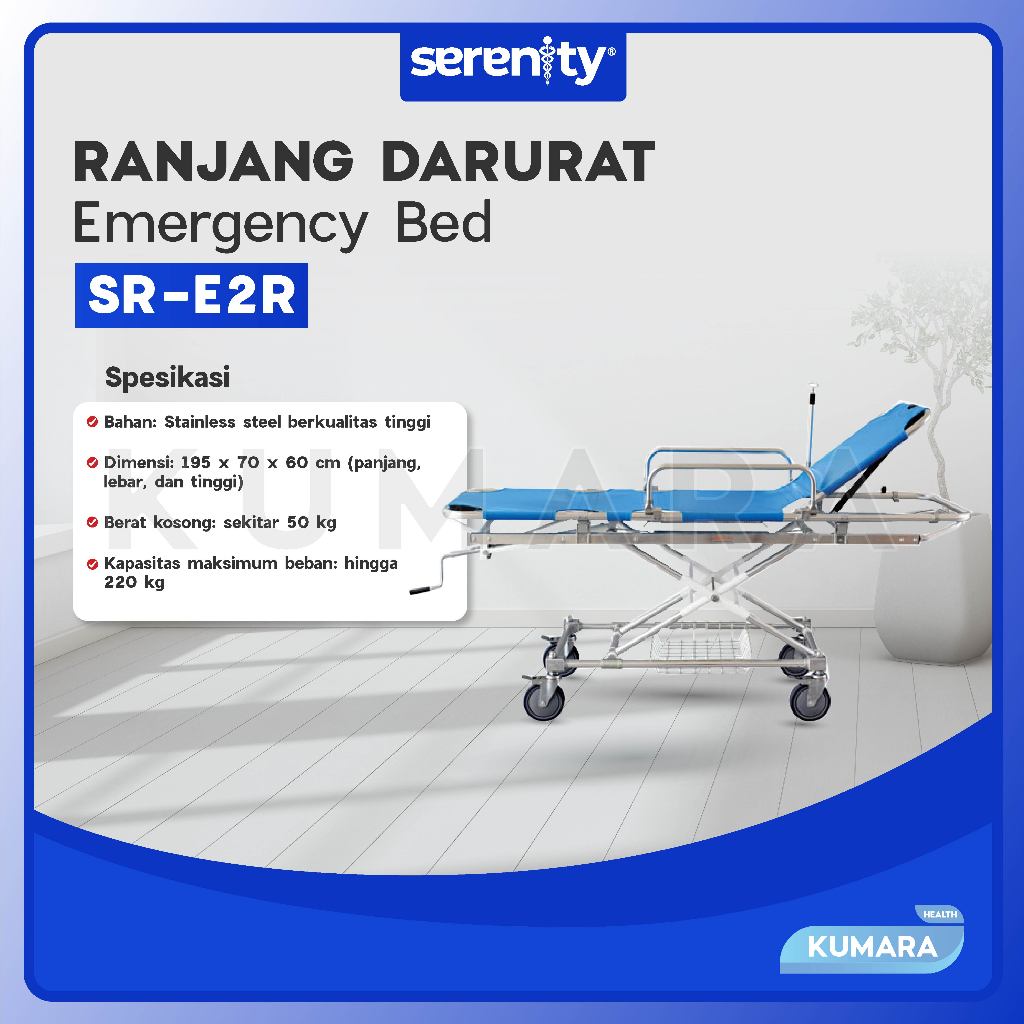 Serenity SR-E2 L Emergency Bed adalah tempat tidur portabel yang dirancang khusus untuk digunakan dalam situasi darurat. Alat ini sangat ideal untuk penggunaan di ruang gawat darurat, ambulans atau transportasi medis lainnya.