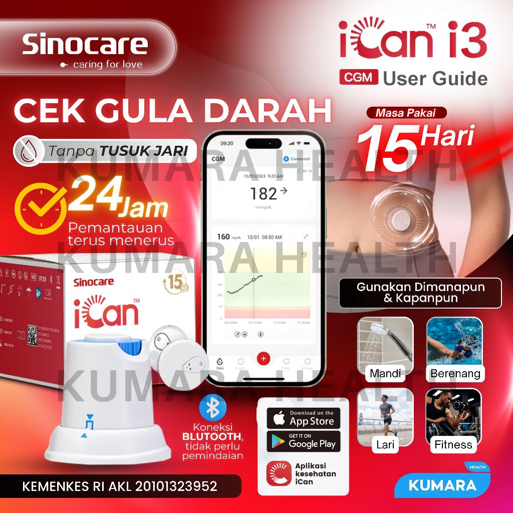 Sinocare CGM iCan i3 adalah inovasi terbaru dalam pemantauan glukosa darah. Alat ini merupakan sistem CGM (Continuous Glucose Monitoring) yang secara berkelanjutan memantau kadar glukosa darah Anda dalam waktu nyata (realtime). Keunggulan utamanya adalah kemampuan untuk mengukur glukosa tanpa tusukan jari, cukup dengan menempelkan sensor pada area tubuh (perut atau lengan), sehingga sangat mengurangi ketidaknyamanan bagi penderita diabetes.