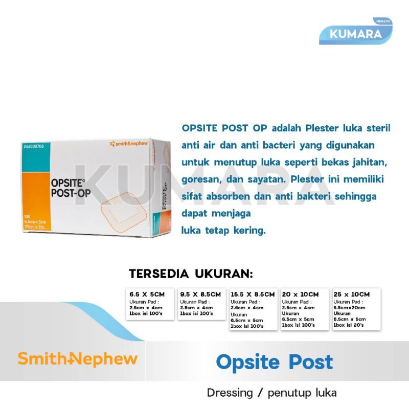 OPSITE POST OP adalah Plester luka steril anti air dan anti bacteri yang digunakan untuk menutup luka seperti bekas jahitan, goresan, dan sayatan. Plester ini memiliki sifat absorben dan anti bakteri sehingga dapat menjaga