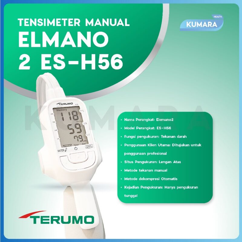Terumo Elemano2 ES-H56 adalah tensimeter semi-otomatis model telapak tangan. Pengukuran tekanan darah dilakukan dari lengan atas. Ini ditujukan untuk penggunaan profesional.