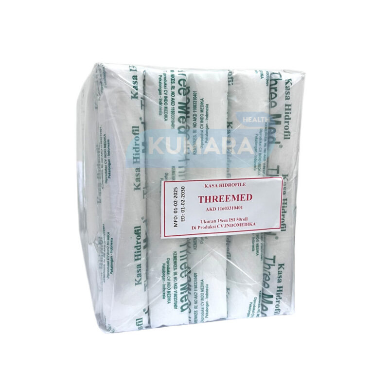 THREE MED – Kasa Perban Hidrofil | Kasa Verban Gulung 1 Pack 50 Roll | KUMARA